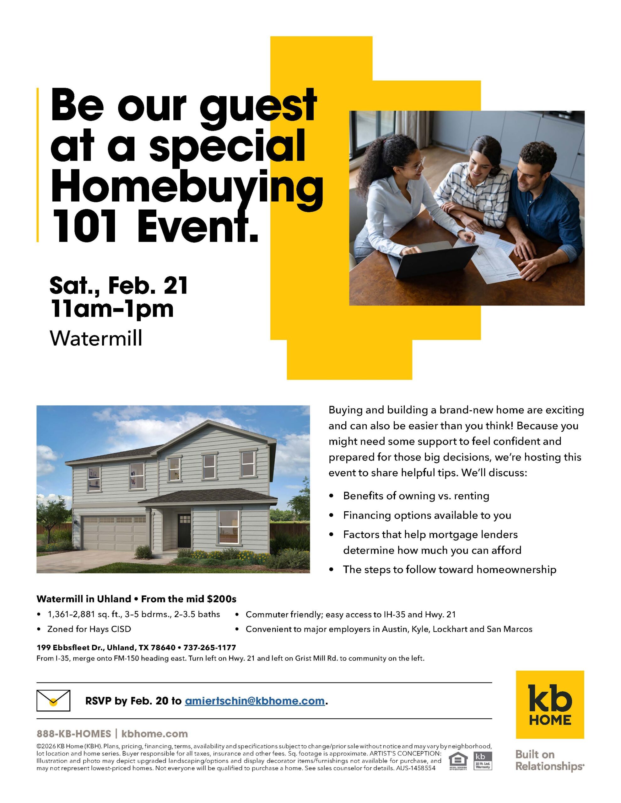 KB Home: Homebuying 101 Event at Watermill in Uhland!