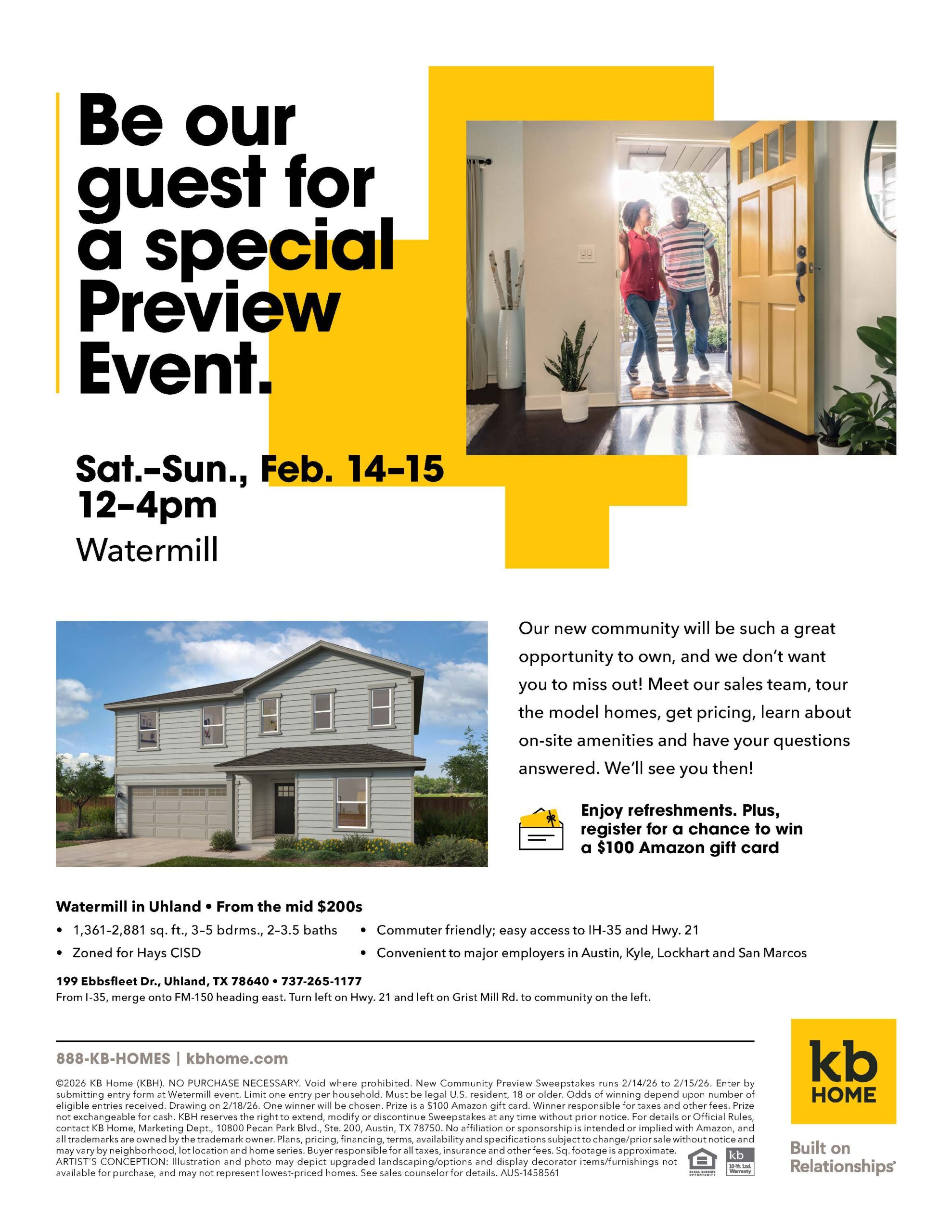 KB Home: Join us for a VIP preview of our new community Watermill in Uhland!